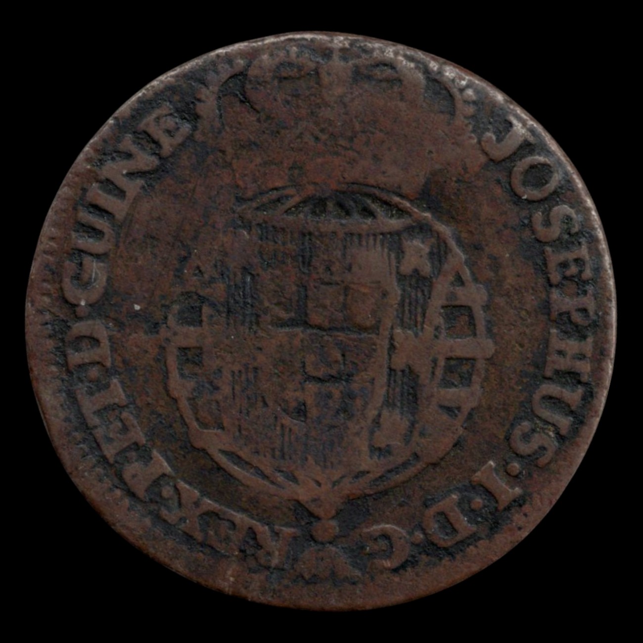 ½ macuta, 1773 Contramarca en 1/4 macuta Cobre, 9.8g, ø 32mm KM# 49.1
