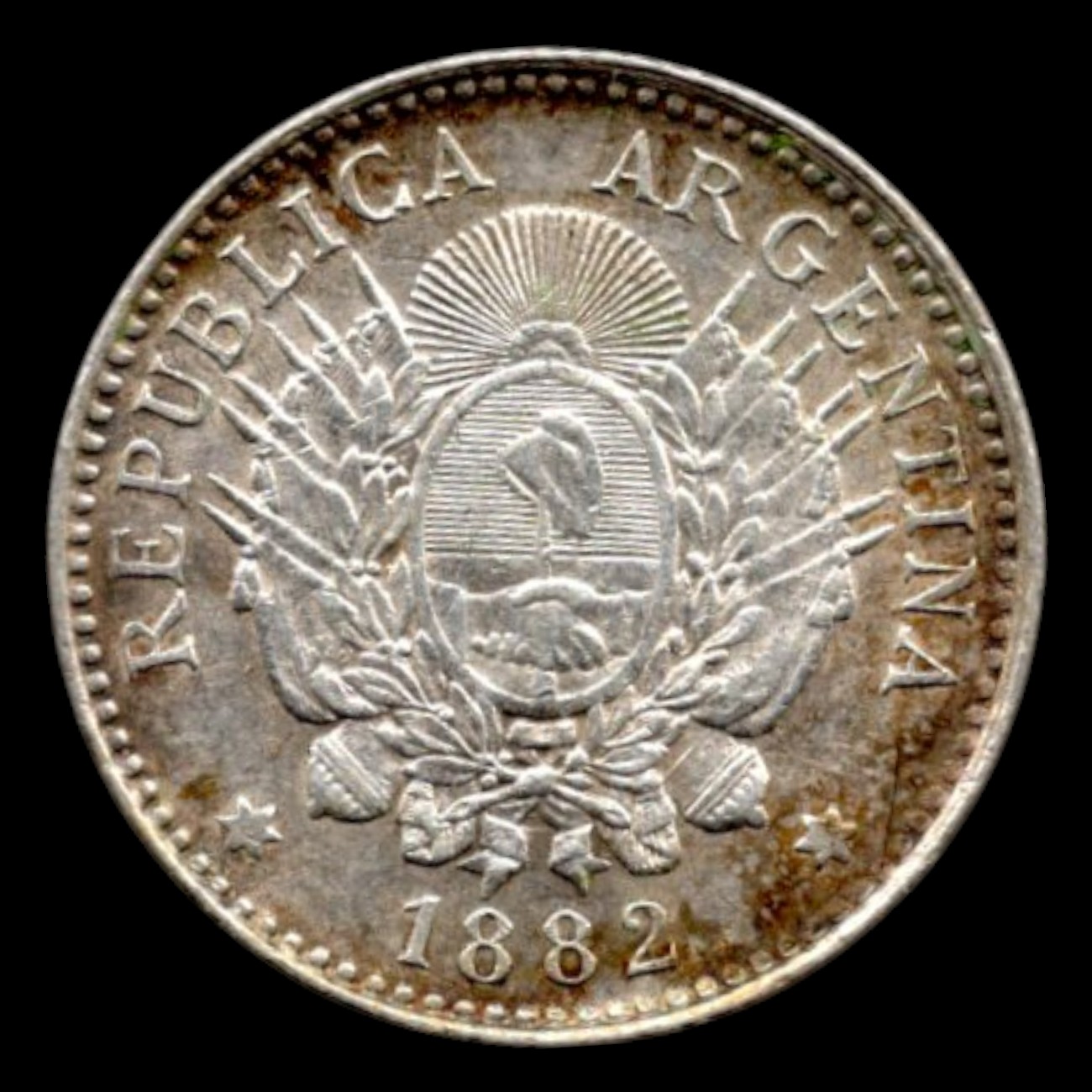 10 centavos, 1882 Plata 0.900, 2.5g, ø 18.3mm KM# 26