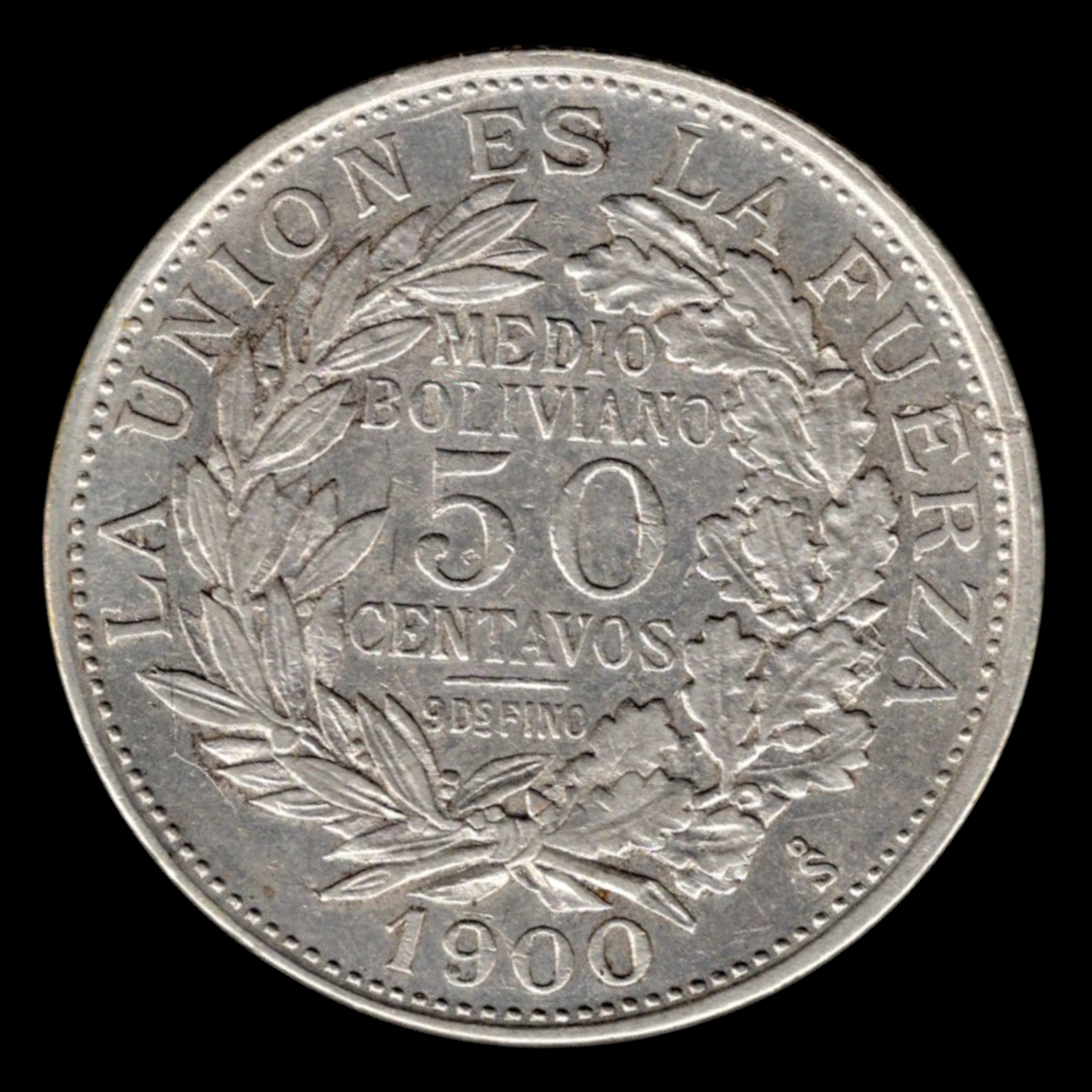 50 centavos, 1900 Plata 0.900, 11.5g, ø 30mm KM# 175