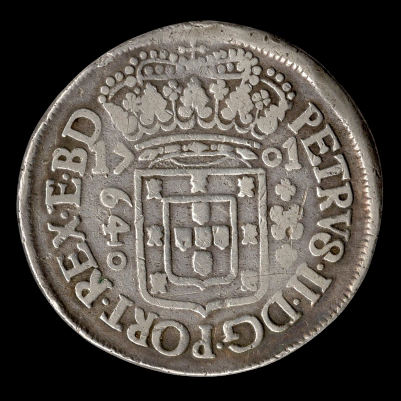 640 réis, 1701 Plata 0.917, 17.92g, ø 37.5mm KM# 90.2