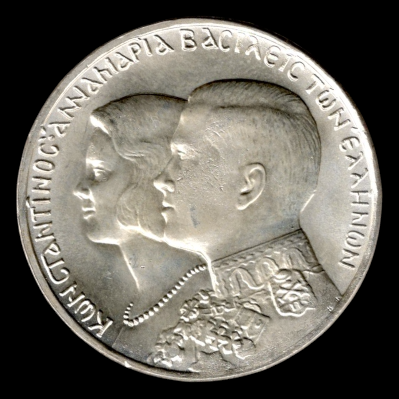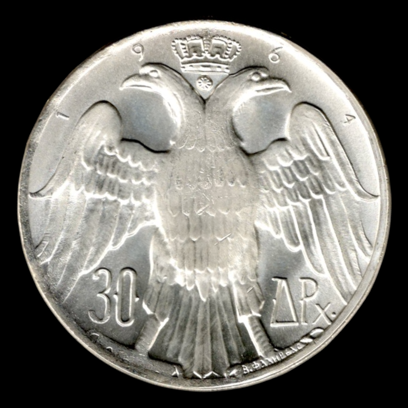 30 dracmas, 1964 Boda Real Plata 0.835, 12g, ø 30.3mm KM# 87
