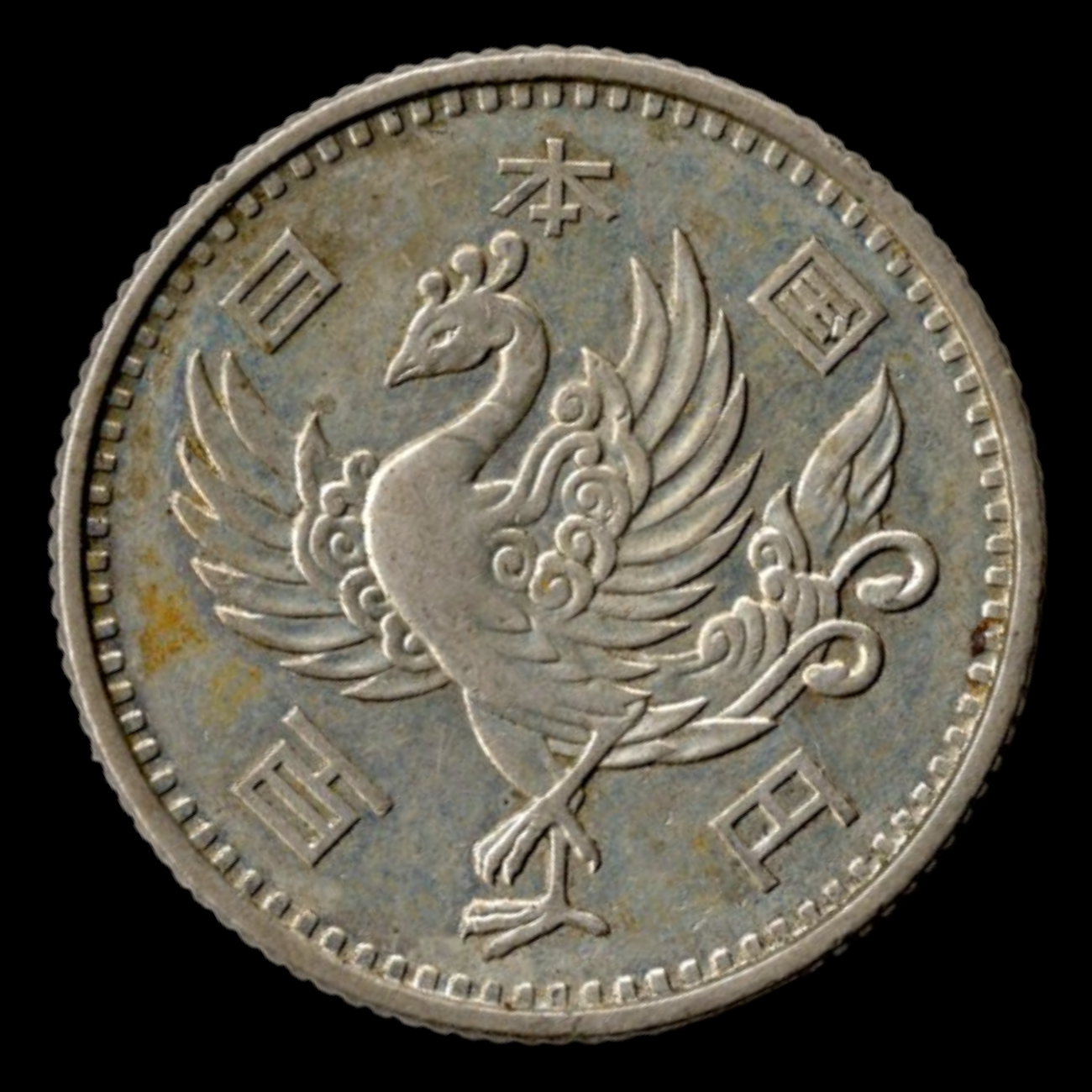 100 yenes, 1958 Plata 0.600, 4.8g, ø 22.6mm Y# 77