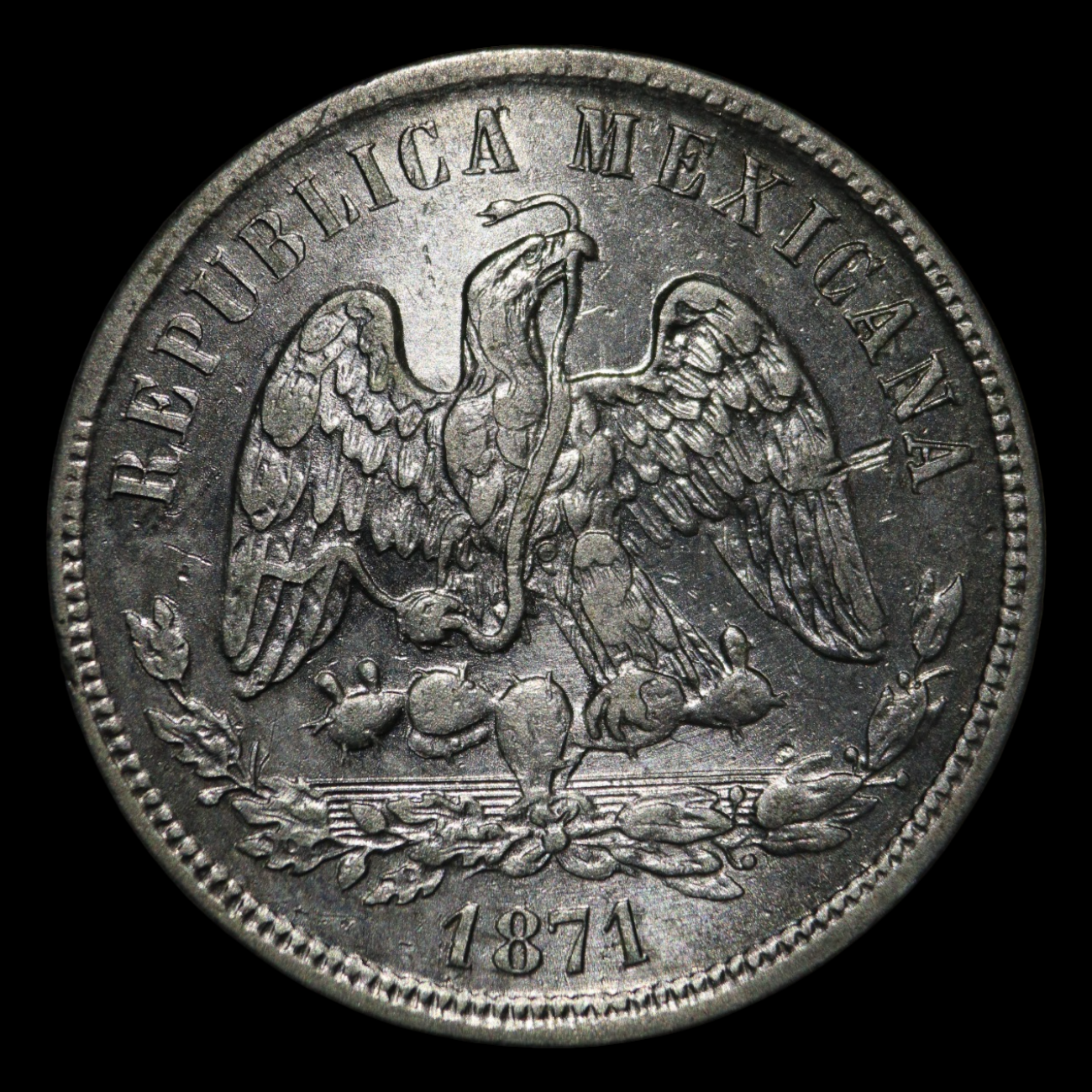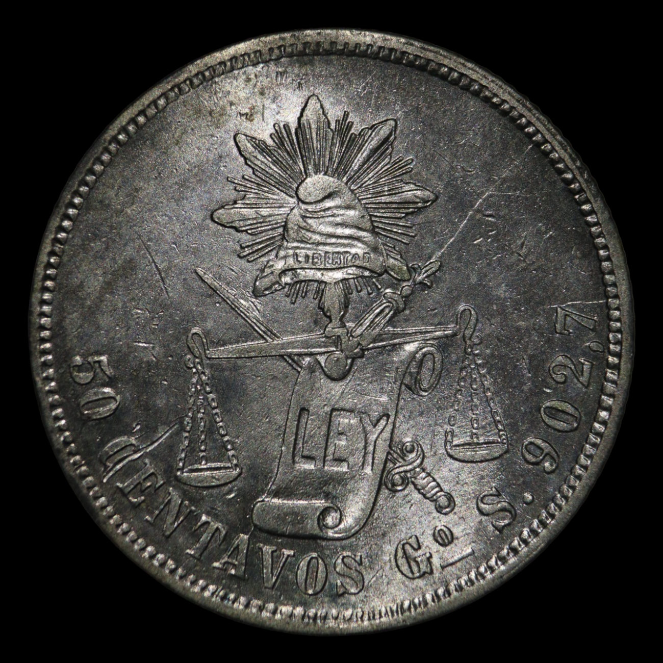 50 centavos, 1871 Plata 0.903, 13.536g, ø 30.5mm KM# 407.4