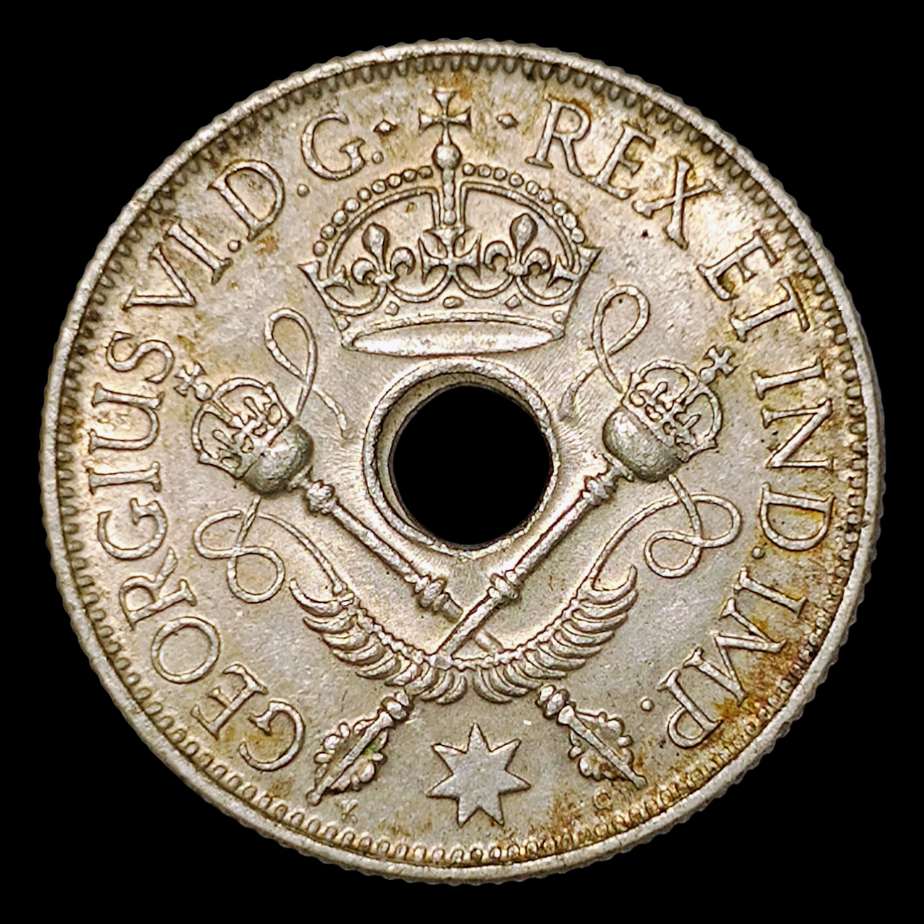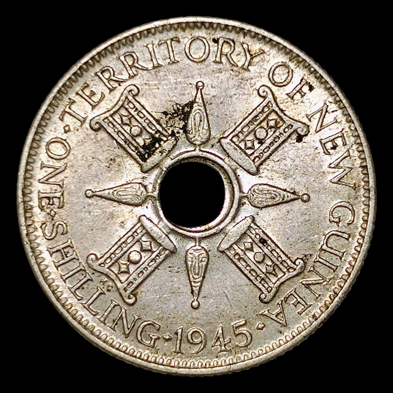 1 chelín, 1945 Plata 0.925, 5.38g, ø 23.5mm KM# 8