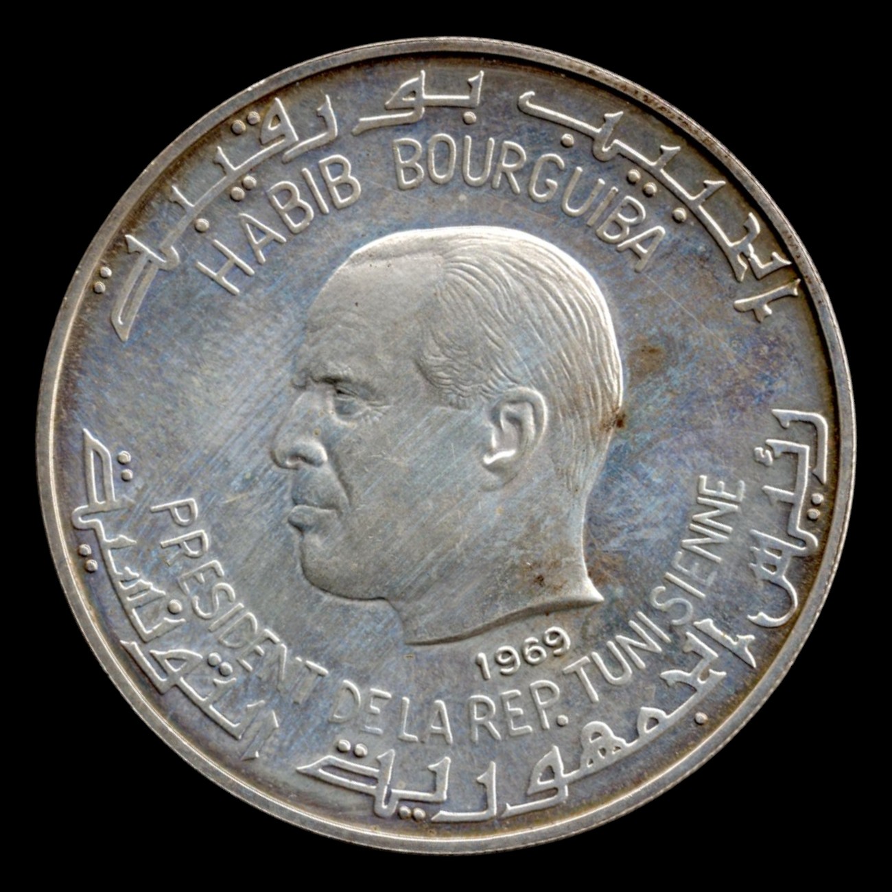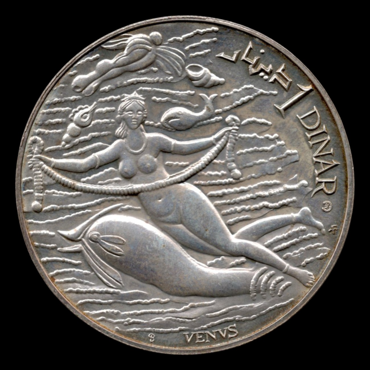 1 dinar, 1969 Planetas del Sistema Solar – Venus Plata 0.925, 20g, ø 40mm KM# 299