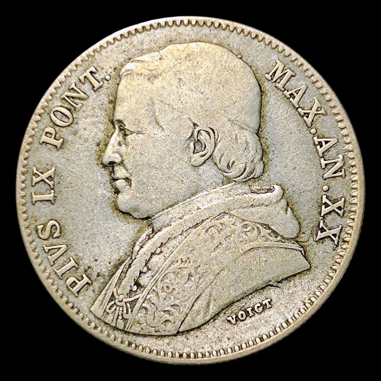 20 baiocchi, 1865 Plata 0.835, 5.33g, ø 24.5mm KM# 1360a